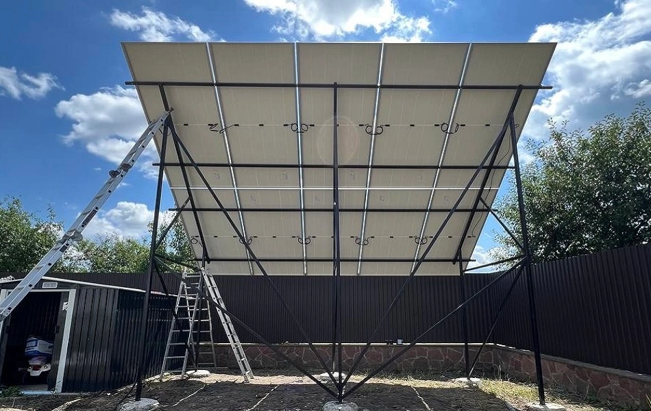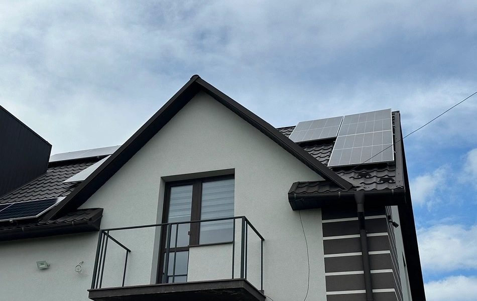Це комбінована СЕС, яка включає наземну та дахову частини загальною потужністю 13,42 кВт. Ми використовували сонячні панелі від компанії Longi Solar 610 Вт LR7-72HTH-610M. Кріплення для панелей виконані з алюмінію та чорного металу.