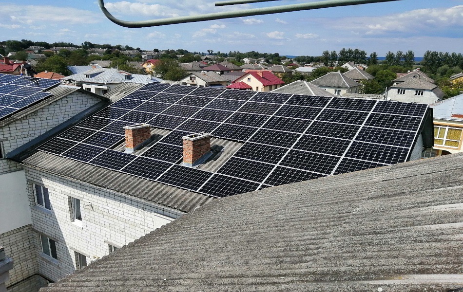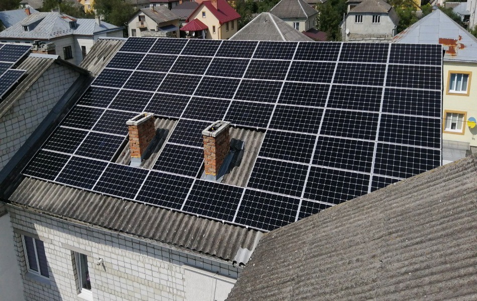 Встановлення мережевої сонячної електростанції на власне споживання в м. Жидачів, Львівської області. Використані сонячні панелі Risen Solar RSM144-6-410M, замонтовані на даховій конструкції з оцинкованого профілю. Покриття даху - шифер. Мережевий інвертор Huawei SUN2000-50KTL-M0 забезпечує якісну роботу всієї системи.