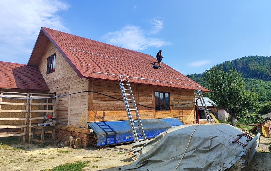 Встановлення гібридної сонячної електростанції в с. Лопушна, Чернівецької області. Використані сонячні панелі LONGi LR5-72HIH-550M, замонтовані на даховій конструкції з анодованого алюмінію. Покриття даху - рубероїд. Гібридний інвертор PROSOLAX X3-HYBRID-12.0М забезпечує якісну роботу всієї системи та дозволяє налаштувати роботу СЕС в різних режимах. АКБ PROSOLAX TRIPLE POWER – LFP T-BAT H5.8 забезпечує безперебійне електрозабезпечення будинку, загальна ємність АКБ 11,6 кВт, що при середньому споживанні в 2 кВт/год ємності АКБ вистачить на 5-6 год.