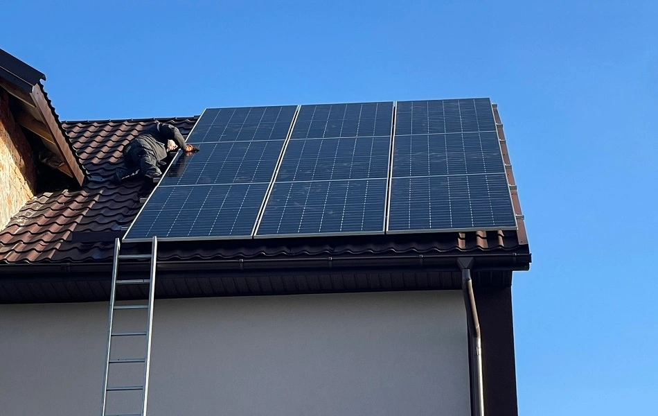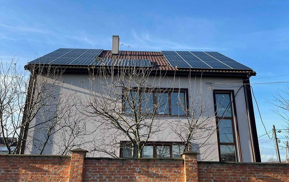 Ця СЕС розміщенна на даху приватного будинку загальною потужністю 20,3 кВт. Ми використовували сонячні панелі від компанії Longi Solar LR7-72HGD-615M Bifacial. Кріплення для панелей виконані з алюмінію.