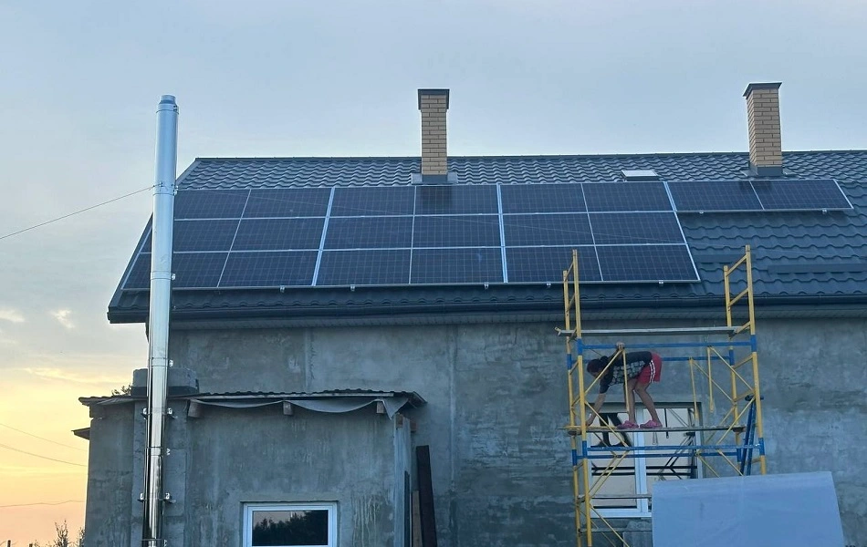 Ця СЕС розміщенна на даху приватного будинку загальною потужністю 6,15 кВт. Ми використовували сонячні панелі від компанії Longi Solar LR8-66HGD-615M Bifacial. Кріплення для панелей виконані з алюмінію.