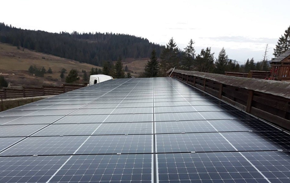Встановлення мережевої сонячної електростанції в с. Волосянка, Закарпатської області. Використані сонячні панелі Risen RSM40-8-410M 9BB TITAN S, замонтовані на даховій конструкції з анодованого алюмінію. Покриття даху - рубероїд. Мережевий інвертор Huawei SUN2000-50KTL-M0 забезпечує якісну роботу всієї системи та дозволяє як користуватись будинку згенерованою електроенергією, так і "скидати" надлишки в мережу.
