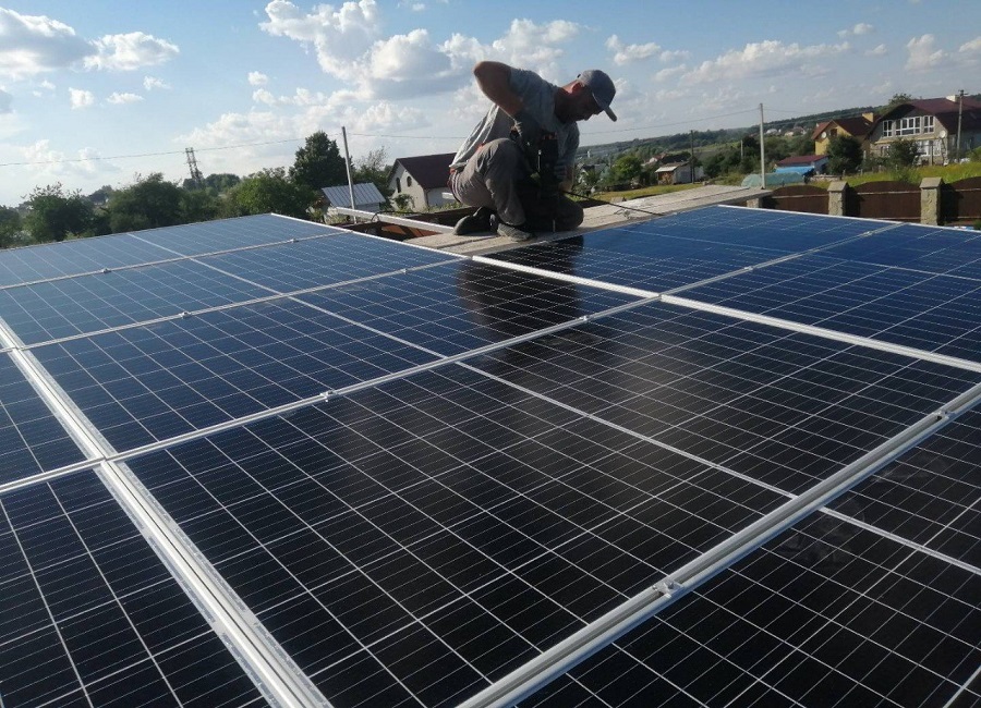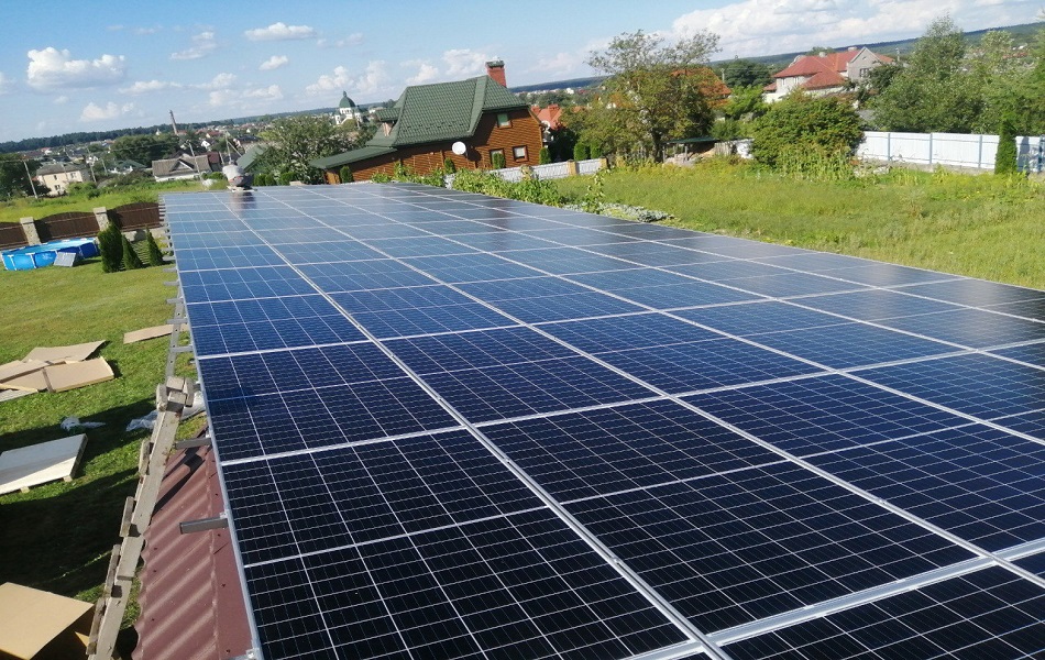 Встановлення мережевої сонячної електростанції в смт Шкло, Львівської області. Використані сонячні панелі LONGi LR5-72HPH-545M, замонтовані на наземній металоконструкції, стійки конструкції забетоновані, матеріал конструкції - чорний метал, оброблений та покрашений. Конструкція виконана у вигляді навісу. Мережевий інвертор Huawei SUN2000-20KTL-M0 забезпечує якісну роботу всієї системи та дозволяє як користуватись будинку згенерованою електроенергією, так і генерувати надлишки в мережу.