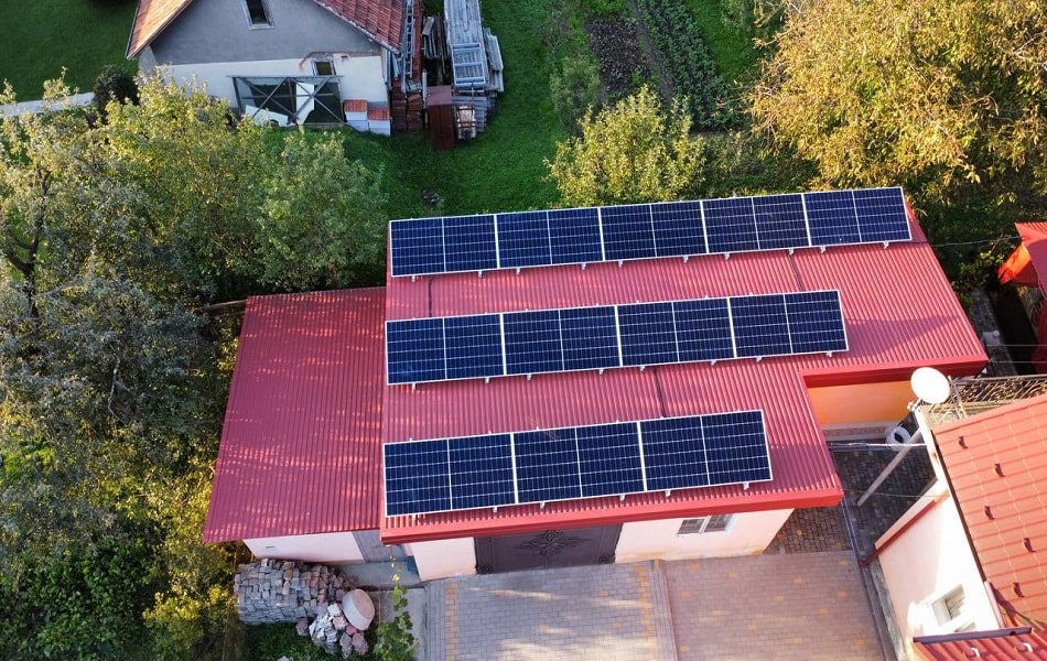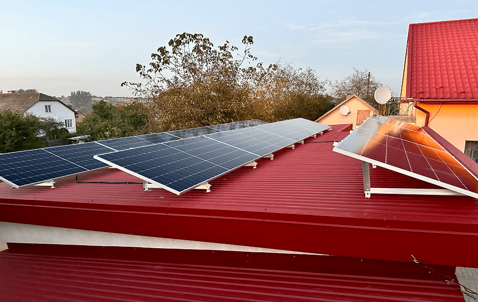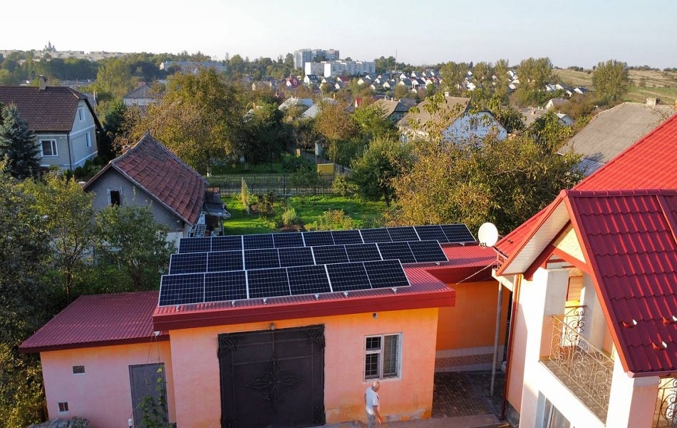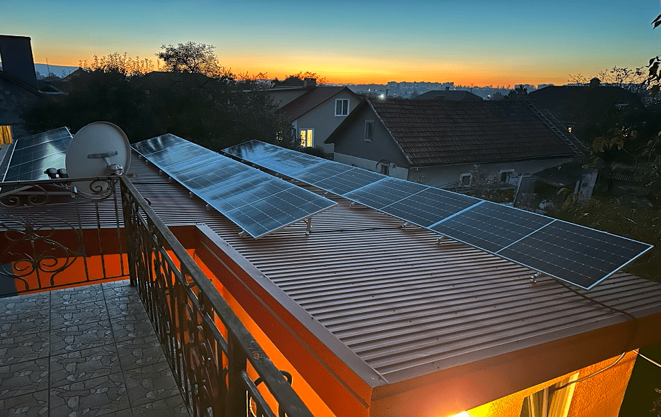Встановлення гібридної сонячної електростанції в м.Стебник Львівської області. Використані сонячні панелі LONGi LR5-72HIH-545M, замонтовані на даховій конструкції з анодованого алюмінію. Використана система "антикут", покриття даху - профнастил. Гібридний інвертор PROSOLAX X1-HYBRID-7.5М забезпечує якісну роботу всієї системи та дозволяє налаштувати роботу СЕС в різних режимах. АКБ PROSOLAX T-BAT H 3.1 (2 шт) забезпечує безперебійне електрозабезпечення будинку, загальна ємність АКБ 6,2 кВт, що при середньому споживанні в 1 кВт/год ємності АКБ вистачить до 6 год.