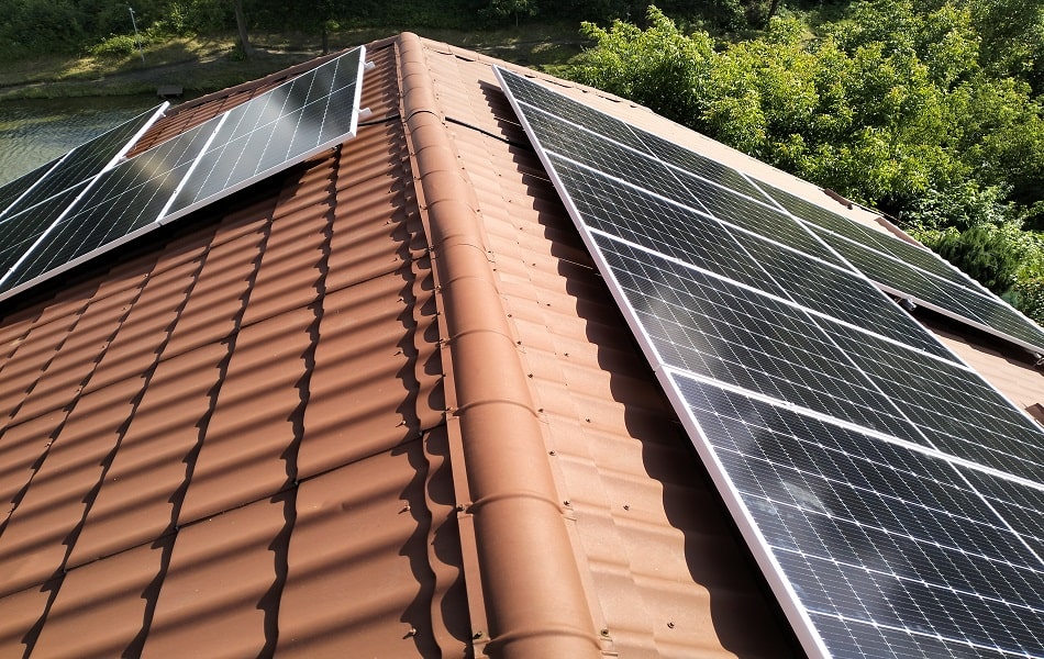 Встановлення гібридної сонячної електростанції в с. Зимна вода, Львівської області. Використані сонячні панелі LONGi LR5-72HIH-545M, замонтовані на даховій конструкції з анодованого алюмінію. Покриття даху - металочерепиця. Гібридний інвертор LogicPower LPW-HY-1033-10000VA забезпечує якісну роботу всієї системи та дозволяє налаштувати роботу СЕС в різних режимах. АКБLP LiFePO4 48V - 100Wh забезпечує безперебійне електрозабезпечення будинку, загальна ємність АКБ 4,8 кВт, що при середньому споживанні в 1 кВт/год ємності АКБ вистачить на 4-5 год.