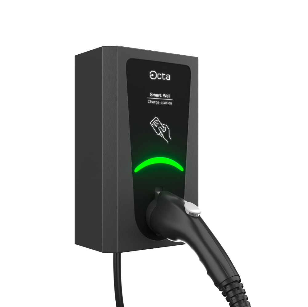 Octa Smart Wall – однопортова зарядна станція для електромобілів, призначена для комерційного використання. Її характеристики та можливості дозволяють встановити даний пристрій в громадських місцях – на парковках кінотеатрів, спортзалів, магазинів, ТРЦ і т.п.