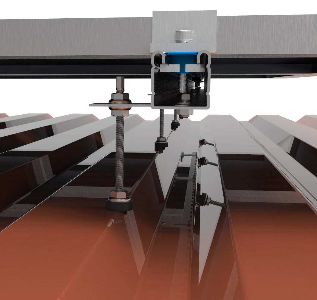 Ця система кріплення сонячних панелей використовується для скатних дахів із таких матеріалів: металочерепиця, бляха, шифер.