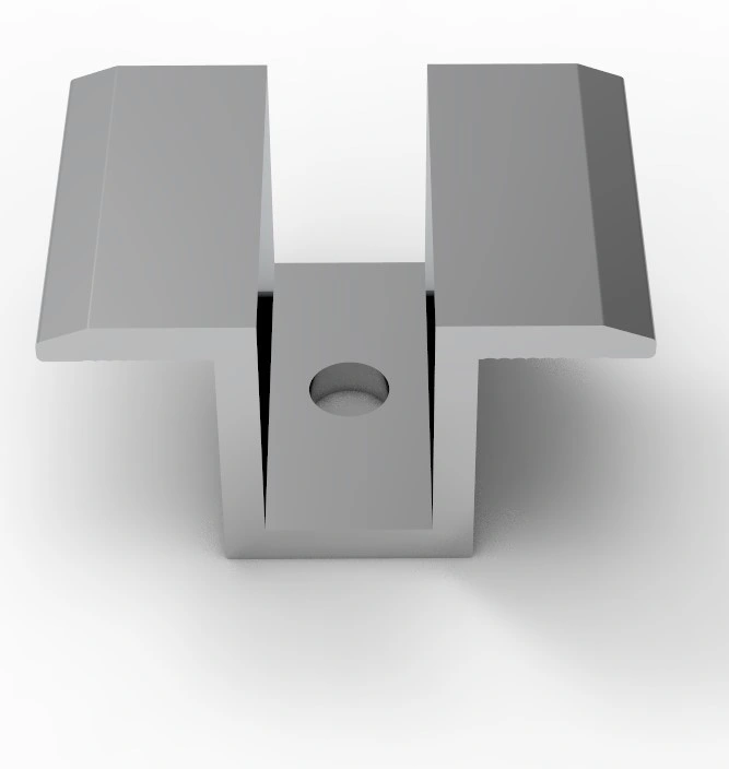 Притискач міжпанельний алюмінієвий. Призначений для закріплення двох і більше сонячних панелей в одному ряду.